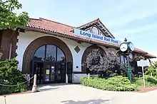Long Beach station was originally built in 1880 by the New York and Long Beach Railroad, however it was much closer to the Atlantic Ocean than the present station. The site was surrounded by Broadway, Penn Street, Edwards Boulevard and Riverside Boulevard, and served the grand Long Beach Hotel,[6] which Austin Corbin claimed was the world's largest hotel.[7] It also included a clock tower on the station house, a water tower, and a gazebo. Additionally, it had a connection to the Long Beach Marine Railway, which served Lido Beach and Point Lookout. The hotel burned down on July 27, 1907 in what was officially ruled as an electrical fire.[8]