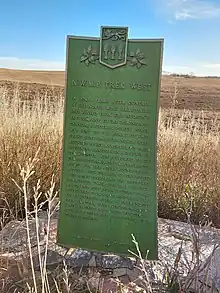 A plaque along Long Creek and Highway 35 commemorating the North-West Mounted Police and their March West in 1874
