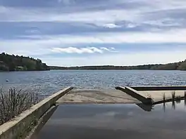 Long Pond is a 211-acre (0.85 km2) cold water pond in Plymouth, Massachusetts, east of Myles Standish State Forest, Halfway Pond and Round Pond, west of Route 3 at Exit 3 and The Pinehills, northwest of Bloody Pond, and north of West Wind Shores. The pond has an average depth of 46 feet (14 m) and a maximum depth of 100 feet (30 m). It is fed by groundwater and an inlet from Little Long Pond, and drains through the pond bottom. A paved boat ramp provided by the Public Access Board with ample parking spaces is easily accessible from Route 3. The Pond has a 50 hp limitation on boating.[1]