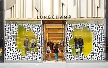 In December 2014, the company opened a larger boutique on the Champs-Élysées in Paris.[13] The store has 500 square meters of retail space split into two levels[13] and is now Longchamp's largest store in Europe.[56] This flagship store houses the brand's entire leatherwear range of accessories for men and women, as well as luggage, women's "ready-to-wear" clothing and shoes. This boutique features a wall of Longchamp's famous Le Pliage handbags[62] and attracts Parisians and tourists from around the world.[56]