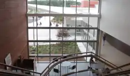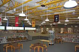 The main two-story academic wing housing most of the school's classrooms extends out to the west from the core lobby area. North of the core lobby is the new gymnasium and athletic and physical education spaces as well as the renovated 1971 wing which was completed during the summer of 2013. The reused wing was nearly completely gutted on the inside and received a completely new brick facade to match the new 2013 building with only the swimming pool and its locker rooms remaining laid out as they were originally built.[5]