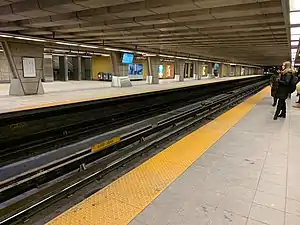 Longueuil station, officially Longueuil–Université-de-Sherbrooke station, is a Montreal Metro station in Longueuil, Quebec, Canada. It is operated by the Société de transport de Montréal (STM) and is the southern terminus of the Yellow Line.[4] It is connected to a campus of Université de Sherbrooke, as well as the largest bus station in Greater Montreal, Terminus Longueuil.