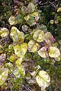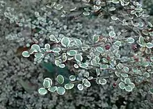 Most Lophomyrtus in gardens are hybrids between the two species. This cross, Lophomyrtus bullata × Lophomyrtus obcordata, is known as Lophomyrtus × ralphii and has produced many popular cultivars in a range of plant sizes and foliage colours.[4] Among the most popular are: 'Kathryn', up to 3 m tall, deep purple-bronze foliage; 'Indian Chief', red-brown foliage that darkens in winter; 'Pixie', a compact form with small, bright, red-brown leaves; 'Little Star', a compact plant with small, rounded, cream-edged green leaves that are suffused with pink; 'Gloriosa', an upright cultivar to 2 m tall, cream-edged green leaves that develop pink tones, especially in winter; 'Black Beauty', narrow upright growth habit to 2 m tall, very dark red-brown foliage; and 'Red Dragon', up to 1.8m tall, narrow red leaves tapering to a point mature to a dark chocolate shade.
