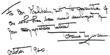 Inscription made by Loraine Wyman in a copy of Twenty Kentucky Mountain Songs, presented by her in 1920 as a courtesy to Henry Krehbiel, "dean of New York music critics"[58] and an enthusiast for Wyman's performances. The signature closely matches another, printed in Lonesome Tunes. Click to enlarge.