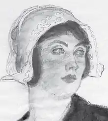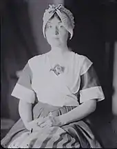 Loraine Wyman in performance costume (here: Breton peasant attire), as portrayed some time in the mid-1910s by her friend[23] the photographer Paul Burty-Haviland
