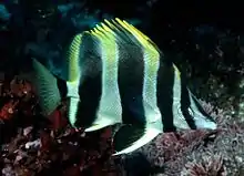 The Lord Howe Island butterflyfish (Amphichaetodon howensis) is a butterflyfish of the family Chaetodontidae, found along the east coast of Australia, around Lord Howe Island, and down the east coast of Northland in New Zealand, at depths of between 10 and 150 m. They are up to 20 cm long with black and yellow/white vertical stripes.