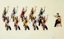 "Matachines Dance," 1937, depicts an intricate dance popular in Ohkay Owingeh Pueblo.[1]