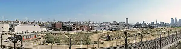 This former site of the Southern Pacific Transportation Company's River Station (1876−1901) is considered the "Ellis Island of Los Angeles" where new arrivals from the East first disembarked.[2][3][4] Corn leaking from train cars and sprouting along the tracks gave rise to the nickname The Cornfield.[3] The 32-acre (13 ha) site was established as a California state park in 2001.[5]