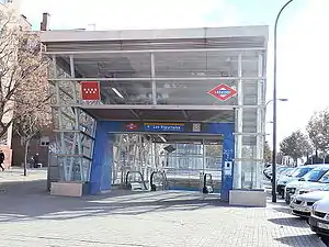 Los Espartales [los espaɾˈtales] is a station on Line 12 of the Madrid Metro, named for the Los Espartales ("The Esparto Fields") housing development. It is located in fare Zone B1.[1]
