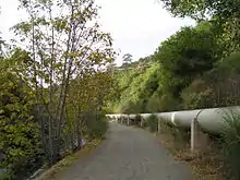 The portion on the east side of the creek starts as the Jones Trail about 300 feet east of the start of the main trail at the reservoir. It connects to both Jones Road and the Flume Trail, both of which lead to downtown Los Gatos. The north portion of the Flume Trail is for pedestrians only as it is windy and goes down to the stream level in several places. Jones Road is an alternative for cyclists.[1] The Jones and Flume trails connect with Novitiate Park and the St. Joseph's Hill Open Space Preserve. There is access and a limited amount of parking available in Novitiate Park and at the end of Jones Road.