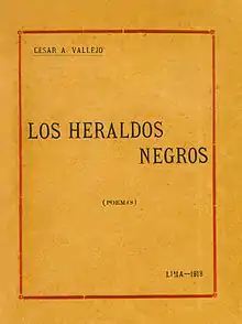 Los heraldos negros is the title of a collection of poems written by the Peruvian poet César Vallejo between the years 1915 and 1918 and published in July 1919. It was the first book of Vallejo's to be published.[1] Los heraldos negros is also the name of the first poem in the collection.
