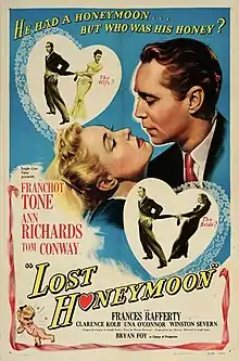 Lost Honeymoon is a 1947 American screwball comedy film directed by Leigh Jason and starring Franchot Tone, Ann Richards and Tom Conway. The working title of the film was Amy Comes Across.[1]
