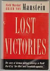 Verlorene Siege (English: Lost Victories; full title of English edition: Lost Victories: The War Memoirs of Hitler's Most Brilliant General) is the personal narrative of Erich von Manstein, a German field marshal during World War II. The book was first published in West Germany in 1955, then in Spain in 1956. Its English translation was published in 1958 for distribution in the UK and the US.