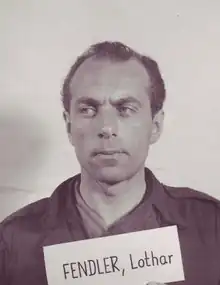 ![]() Fendler's mugshot after his indictment for the Nuremberg Military Tribunal (July 1947) | |