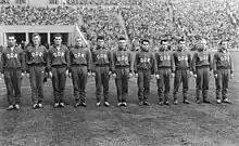 Lothar Meyer (fifth from left) with the East Germany national team in 1957