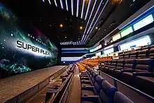 SUPER PLEX World Tower Formerly named SUPER PLEX G, the theater was renamed in 2022 and houses the world's largest screen (34m x 13.8m) and is listed on the Guinness Book of World Records. The auditorium has a 4K dual laser/shaker system, Dolby 136 sound package, and seating prices vary based on format and premiums. · World Tower [7]