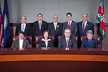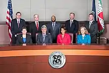 In November 2011, Republicans were elected to all nine seats on the Board.[15] Over the course of the four-year term, three supervisors served as the Vice-Chair: Janet Clarke (Blue Ridge), Shawn Williams (Broad Run), and Ralph Buona (Ashburn). Clarke was elected Vice-Chair on January 3, 2012, and served until December 31, 2012, choosing not to hold the position a second year.[16] On January 2, 2013, Williams was elected to serve as the next Vice-Chair,[17] a position he held until March 2015. Williams resigned the Vice-Chair post on March 16, 2015, after a 2006 arrest for assault in Ocean City, Maryland resurfaced.[18] Two days later, on March 18, 2015, the Board elected Buona as the new Vice-Chair,[19] a position he held through the remainder of the term. On September 6, 2015, Shawn Williams, the Broad Run District Supervisor, resigned his supervisor position after being arrested for simple assault and unlawful entry earlier that day.[20] The Board appointed Jim Bonfils to fill the Broad Run District seat on September 21, 2015,[21] from a list of 13 applicants (including former Broad Run District Supervisors Steve Stockman, David McWatters, and Chuck Harris).[22] Bonfils was sworn in on September 22, 2015,[23] and served out the remaining 101 days of the term.