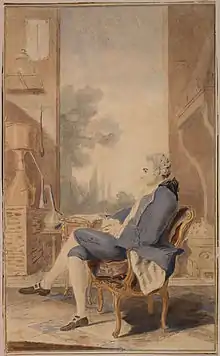 Louis-Léon-Félicité de Brancas, 3rd duc de Lauraguais seated in his study, with chemical apparatus.