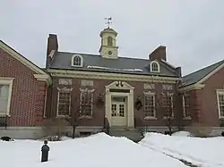 The Goodall Library is located at the northern corner of Main and Elm Streets, just south of Sanford center. The original 1937 Georgian Revival structure is 1-1/2 stories in height, built of brick with a slate roof and cupola. A central horizontal section is flanked by projecting gabled sections on either side. To the rear of this block stands a two-story modern addition built in 1976. The 1937 portion was designed by Portland architect William O. Armitage, and was a gift to the town by Dr. and Mrs. Harvey Thornburgh, named in honor of her father, Louis B. Goodall, who was one of the town's most well-known residents. The building is owned by the city and managed by a board of trustees.[2]