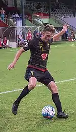 Following the league tournament, he first shown his impact to the United Football League by scoring 2 goals against one of Kaya FC's rival clubs, Global FC.[7] However, the winger missed some games in the latter part of the UFL league due to injuries.[8] Despite his day-to-day status entering the 2015 UFL Cup tournament, he recovered completely right before the semifinals. He put the fifth goal for the penalty shootout in the semifinals match against Stallion FC, which booked Kaya FC's place in the UFL Cup final against Ceres-La Salle FC.[9][10]