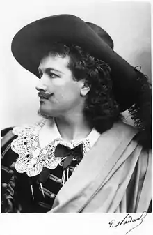 He sang in Geneva for a season then returned to the Opéra-Comique.[2] There he sang in Mignon (Wilhelm), La dame blanche (Georges), La Traviata (Alfredo), Carmen (Don José), L'Ombre (by Flotow), Le postillon de Lonjumeau, and created Le comte de Nangis in Chabrier's Le roi malgré lui (1887).[4] At the 100th performance of Le Barbier de Séville at the Opéra-Comique on 25 Feb 1887, he sang Almaviva with Mézeray as Rosine and Soulacroix as Figaro; other roles with the company included Mergy in Le pré aux clercs and Alexis in Le déserteur.[5]