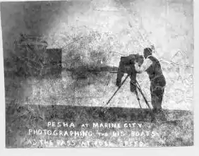Only known photo of Louis Pesha. He is shown photographing a passing ship on the St. Clair River.