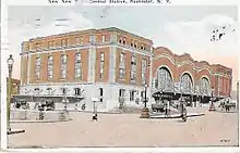 The 1882 station would be demolished and replaced in 1914 at the modern site by the more famous New York Central station designed by Claude Fayette Bragdon. The station, often referred to as Bragdon Station, was four stories with three high arching windows reminiscent of train driving wheels and a main room that was reminiscent of New York's Grand Central Terminal complete with arched ceilings and a lunch counter. The station at its height had 6 island platforms connected to the main station building by two tunnels, one for passengers and one for baggage and mail that went all the way to the Cumberland St. Central Post Office. The station was seen as one of Bragdon's greatest architectural accomplishments. As was the case with several large stations of the era, with falling revenues and the high maintenance costs and taxes of such a large facility the station was sold by the New York Central Railroad in 1959 to a private owner.