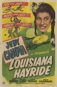 Louisiana Hayride is a 1944 American comedy film directed by Charles Barton and starring Judy Canova, Ross Hunter and Richard Lane.[1] It was made by Columbia Pictures rather than Republic, with whom Canova mostly worked during the decade. The film's art direction was by Lionel Banks and Walter Holscher.
