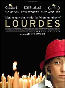 Lourdes is a 2009 film directed by Jessica Hausner. It stars Sylvie Testud, Léa Seydoux, Bruno Todeschini and Elina Löwensohn. It received the 2009 Vienna International Film Festival's Vienna Film Prize for Best Film.[3]