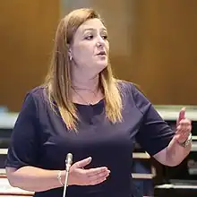 María de Lourdes Cuesta Orellana (born 5 October 1976) is an Ecuadorian politician who was a member of the CREO party until she left. She stood again for election for the Social Christian Party. She represents the Province of Azuay.
