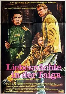 Love Nights in the Taiga (German: Liebesnächte in der Taiga) is a 1967 West German thriller film directed by Harald Philipp and starring Thomas Hunter, Marie Versini and Stanislav Ledinek.[1] It is also known by the alternative title of Code Name Kill.