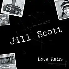 "Love Rain" is a 2000 song by Jill Scott. Co-written with Vidal Davis, the soul song describes a young couple's summer romance, including sexually graphic lyrics and weather metaphors. Scott employs spoken word as well as breathy and syncopated vocals, while a remix includes a verse by American rapper Mos Def.