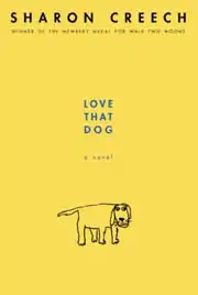 Love That Dog is a free verse piece written by Sharon Creech and published by HarperCollins. It is written in diary format, in the perspective of a young boy who resists poetry assignments from his teacher.[1] The author drew inspiration from Walter Dean Myers' poem, Love That Boy.[2] The book received good reviews[3][4] and was a finalist for the 2001 Carnegie Medal as well as being commended at the 2002 Children's Book Awards.[5][6] The book has also appeared on the New York Times Best Seller list.[7] Love That Dog is composed of multiple short chapters - each chapter is listed as a diary entry. As the novel develops and Jack's confidence grows, so does his literary style. He progresses from short and defiant sentences to more sophisticated poetry. Jack writes many poems, and eventually stops being anonymous.