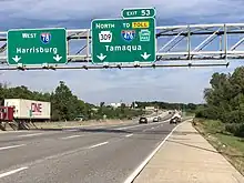 The most prominent major highway serving Lower Macungie Township is Interstate 78, which briefly passes through the extreme northern tip of the township. Pennsylvania Route 309 becomes concurrent with I-78 there on its way southbound. Interstate 476 follows the Pennsylvania Turnpike's Northeast Extension along a northwest–southeast alignment across the northeastern part of the township; the nearest interchange is in South Whitehall Township.