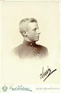 In 1890, fifteen-year-old Pedro, thirteen-year-old Luís, and their younger brother Antônio (nicknamed "Totó"), moved along with their parents to the outskirts of Versailles.[10] After the death of Pedro II in 1891 the monarchists made various efforts to restore the monarchy in Brazil. However, none of the imperial family provided any kind of aid or even words of explicit support.[11] Luís's older brother, Pedro, reached the age of majority in 1893, but he had no capacity or desire to assume the monarchist cause.[12] In the same year he left for Vienna, capital of the Austro-Hungarian Empire, to study in the military school at Wiener Neustadt.[13] According to his own mother it was "clear that he must do something and a military career seems to us the only one he should follow".[13] Luís and his brother Antônio followed their older brother at the same military school.[13]