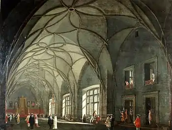 Most of works involve interior and exterior views of monumental buildings, although he also created some works with religious and historical themes. He would sometimes collaborate with Clemens, who helped him turn his works into copperplate engravings. Of especial note are his proposed designs for the completion of St. Vitus Cathedral at the Prague Castle complex.