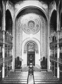From 1839/40 he worked as a freelance architect, Otto Wagner, among others, was a member of his studio. 1846–52 Förster worked with his son-in-law Theophil Freiherr von Hansen. He contributed to the Ringstraße. Berlin-educated Ignaz Wechselmann became his friend and assistant. Förster superintended the construction of the Dohány Street Synagogue in Budapest, which along with the Leopoldstädter Tempel and the Synagogue of Miskolc is his most important work. Forster and Hansen designed the structure - the largest synagogue in Europe[1] - based on Byzantine-Moorish style as shown features such as the polychromic building with onion domes and arched gates.[3]
