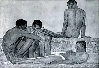 at the start of 1890 he teamed up with Friedrich Fehr in order to set up a private drawing and painting school in Munich.[2] During his time at the Academy of Fine Arts Schmid-Reutte had pursued his artistic study with particular intensity in the anatomical dissecting room,[1] and some sources describe the painting school as a specialist arts school for anatomy drawing. The academy acquired a good reputation, also providing instruction of life models to students of the ladies' academy at the Munich (women) artists' association ("Münchner Künstlerinnenverein"). During the 1890s in Munich he was also giving private art lessons. One young pupil was the painter-sportsman Julius Seyler.[3]