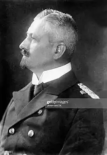 Two months after the outbreak of World War I, he was made captain of the battlecruiser SMS Derfflinger, which he also commanded during the Battle of Dogger Bank. In September 1915, he became commodore and commanding officer of the Fourth Scouting Group of five light cruisers (SMS Stuttgart, SMS Hamburg, SMS München, SMS Stettin, SMS Frauenlob), leading the group during the Battle of Jutland. Promoted to Konteradmiral in November 1916, he was placed in command of the Second Reconnaissance Group, a fleet of six light cruisers including his flagship SMS Königsberg. He commanded the group during the mine sweeping operation that led to the Second Battle of Heligoland Bight in November 1917. Faced with a surprise attack by a numerically superior force of British ships, he successfully withdrew his group under fire to the protection of the battleships SMS Kaiser and SMS Kaiserin.[1] Reuter was appointed commander, Reconnaissance Forces and I Scouting Group in August 1918, succeeding Franz von Hipper.