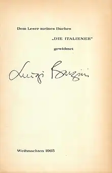 Inscription in the German edition of: "The Italiens", 1965 (Riemann Archives)