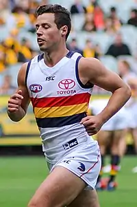 Brown established himself in Adelaide's team as a negating small defender in 2013, filling the role vacated by retired veteran Michael Doughty and playing 21 of a possible 22 games.[3] He signed a two-year deal with the club early in the year,[4] and was nominated for the 2013 AFL Rising Star award in the final round of the season.[5] Brown continued to play this role to great effect in 2014 and 2015, playing every game in both seasons, keeping the opposition's best small forward to a goal a game or less, and developing his attacking game with a disposal efficiency of 80.2% in 2015.[3] During the year, Brown signed another two-year contract with Adelaide.[6]During the finals series of the 2022 season, Brown announced his retirement after 189 AFL matches,which included being part of the 2017 losing team in the Grand Final.[7]