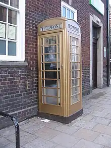 Gold telephone box near St Paul's Boxing Club, Hull commemorating Campbell's gold medal at the 2012 Summer Olympics.