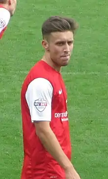 He joined League Two club York City on 4 October 2013 on a 28-day emergency loan.[17] His debut came the following day in a 3–0 away defeat to Torquay United, before scoring his first goal for York in a 2–2 draw away to Chesterfield with a 30-yard shot into the bottom right corner.[18][19] On 31 October 2013, O'Neill's loan was extended until 4 January 2014, after making six appearances and scoring one goal for York.[20] He was recalled by Burnley a day early on 3 January 2014 to be part of the squad for their FA Cup match against Southampton.[21] He had made 16 appearances and scored one goal for York.[18]