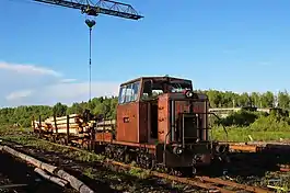 Planning for the railway began in 1948 and building began in 1948–1950. In 1950 regular wood transport on the railway started, between Lundanka and loggings.[2] The Lundanskaya forestry railway's first line was constructed in 1950, in the area of Podosinovsky District in Kirov Oblast from the village Lundanka. The total length of the narrow gauge railway at the peak of its development exceeded 22 kilometres (14 mi), of which 15 kilometres (9.3 mi) are currently operational. The railway operates scheduled freight services from Lundanka, used for forestry tasks such as the transportation of felled logs and forestry workers.[3] In 2017, repairs were made to the track.[4]