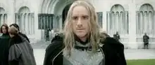 Irolas (played by Ian Hughes)[3] is an officer of Minas Tirith who appears after Faramir retreats from Osgiliath. He fights in the Battle of Minas Tirith. His name is derived from a variation of the name of the canonical Iorlas, an uncle of Bergil, a Gondorian boy whom Pippin befriends. This character was originally going to be Beregond,[3] Bergil's father, who also befriends Pippin and is instrumental in saving Faramir from Denethor's funeral pyre, but according to the DVD commentary the role was so reduced that they felt it was not worth officially naming him "Beregond".