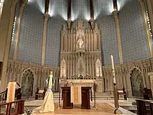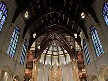 Luther Memorial’s music program is led by Andrew Schaeffer, who has served as the director of music since 2018.[9] Three pipe organs are used in worship: a 56 rank Austin pipe organ, a Steere tracker organ, and a Bedient portative organ.[10][5][11] The church hosts the winter choral concerts presented by UW-Madison's choirs each December.[12] Luther Memorial has twice been a venue for concerts by the St. Thomas Choir of Leipzig, a boys' choir founded in 1212. Luther College and St. Olaf College choirs also regularly perform in the church's nave.