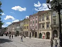 Rynok Square (Ukrainian: Площа Ринок, romanized: Ploshcha Rynok, Polish: Rynek we Lwowie, German: Ring) is a central square of the city of Lviv, Ukraine. According to archaeological data, the square was planned in the second half of the 13th century, during the reign of Prince Leo I of Galicia.[1][2] However, there is a long tradition of later dating the emergence of the square, associated with the activities of the Polish king Casimir III the Great.[3]