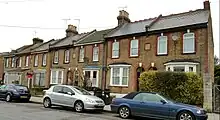 Cissie lived in Mayfair Court with her mother Florence from 1935 until her death in 1940, and from 1935 to 1937 her father George Hill lived there too.[56][57] In 1937 she applied to build steps and a bedroom to a design by John Howell & Son over the garage at the south end of Mayfair Court. It was approved by the Council in September and completed by November 1937.[52] In 1938 she applied to have a small greenhouse designed by the same architect; it was completed by 10 February 1939. At that time, Mayfair Court stood on an L-shaped plot of land; part of it is now built on. The greenhouse stood on the south-western corner, now occupied by garages.[58] On 22 May 1939 the same architect was employed again to submit an application to build a concrete tube air raid shelter,[59] possibly similar to the Stanton shelter.[60] This was built at the bottom of the garden, parallel with Hampton Pier Avenue.[59]