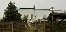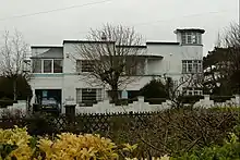 This reinforced concrete Art Deco house has always been painted blue and white;[33] the colour even features on the 1937 plan for an extension.[52] It stands at number two Clifftown Gardens at Westcliff in Herne Bay and was started in 1934 and completed in 1935.[33] Council archives have been lost and the architect is not known. A firm called John Howell & Son was contracted for the extension, greenhouse and air-raid shelter during the 1930s, but it was not John Howell & Son of Hastings; the last partner of that company died in 1903.[53] Although it was funded by the Sultan,[26] Cissie was the executive owner of Mayfair Court and the adjoining two Art Deco houses at 139 and 141 Grand Drive from the beginning.[24] She bought a number of 15-foot-wide plots in Clifftown Gardens and Grand Drive, and built Mayfair Court first. In spite of the cancellation of the engagement in 1938, the Sultan continued to fund Mayfair Court and the associated servants' quarters for her. It has also been suggested that the Sultan (via Cissie) did not build the associated two houses for servants, but built them to claim the land and to prevent unsightly building by neighbours next door.[24][54][55]