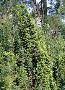 Lygodium japonicum is a species of fern that is known by the common names vine-like fern[1] and Japanese climbing fern. It is native to eastern Asia, including Taiwan, Japan, Korea, southeastern Asia, and India, and eastern Australia. The fern is present in the southeastern United States and Puerto Rico as an introduced species.[2]